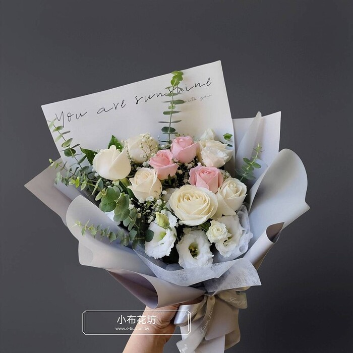 花材 粉玫瑰 白桔梗 進口粉乒 季節葉材