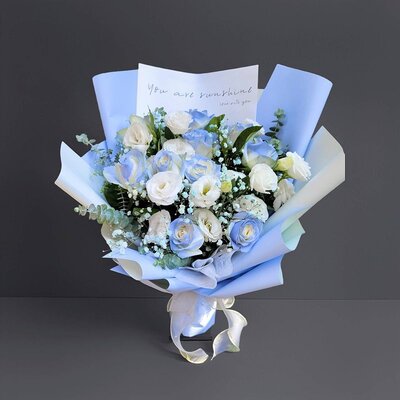 H11141 單朵進口紅玫瑰滿天星花束(自取價)